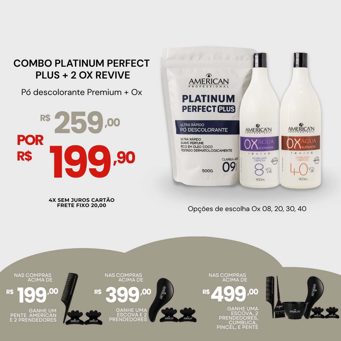 O Pó Descolorante PLATINUM PERFECT PLUS combina em sua fórmula ação suavizante que promove um clareamento perfeito, com superior proteção da fibra capilar. Contém em sua formulação Óleo de Coco um emoliente que ajuda a proteger os cabelos das agressões químicas, pois ao aplicar o produto obtém-se um filme lubrificante que ajuda a evitar a perda de proteínas e água, formando uma verdadeira capa de proteção para os fios, evitando também o ressecamento.